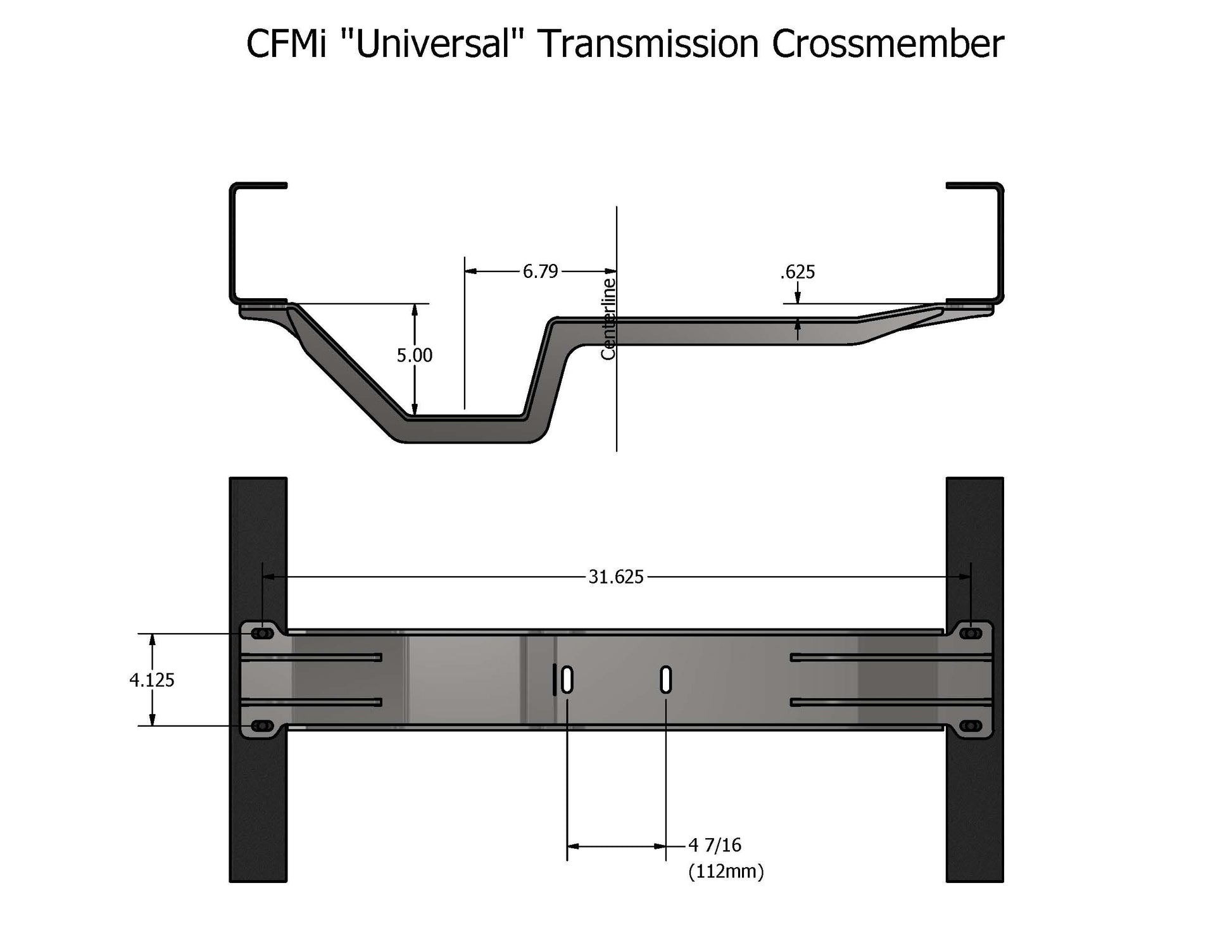 - The transmission mount holes are designed for two 3/8" (10mm) studs/bolts with a spacing of approximately 4-7/16" (112mm). Please verify that the mount you are going to use will work (or understand that you will need to drill/slot new holes for it!)