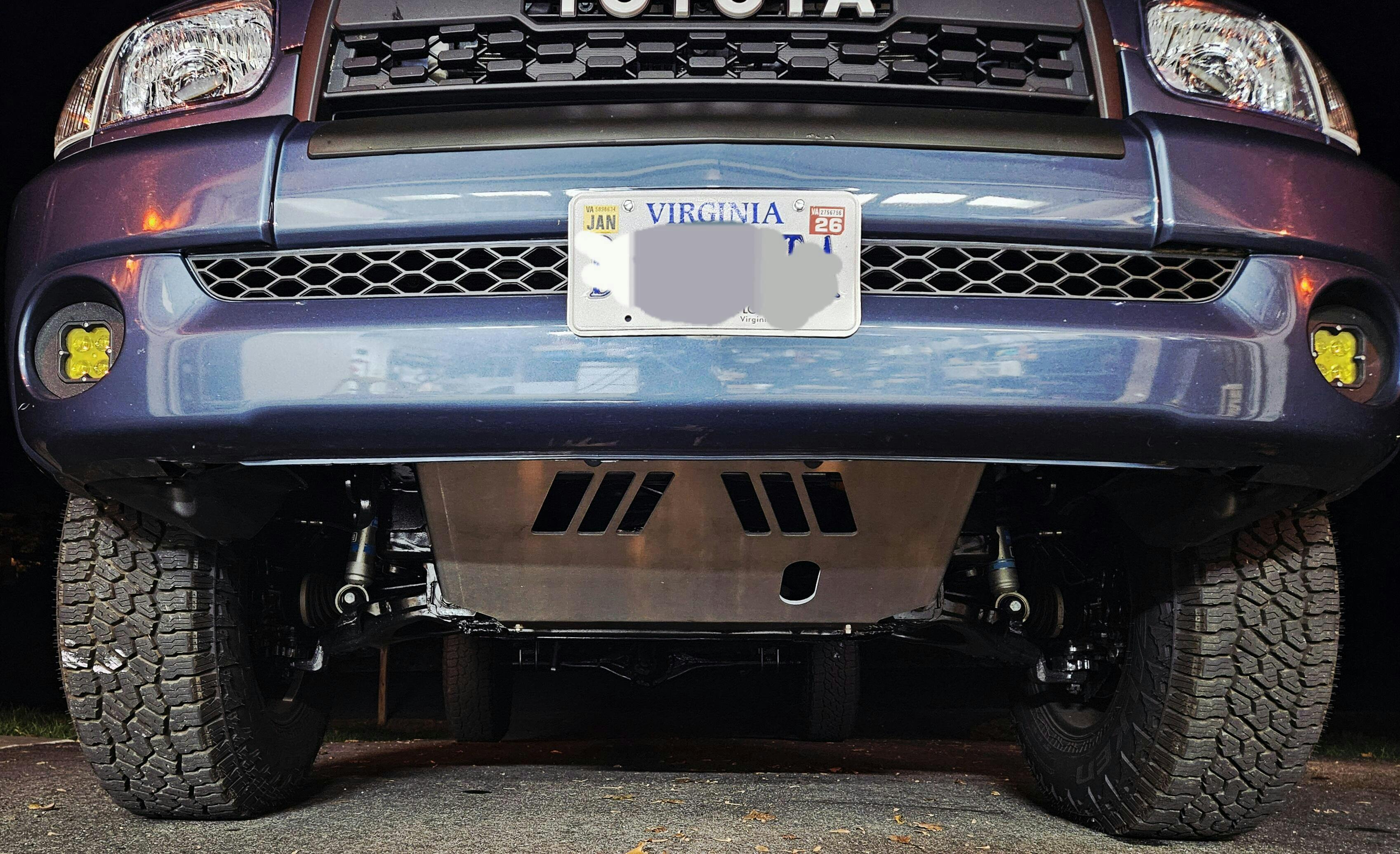 Front Skidplate for the 2000-2007 Toyota Sequoia. Made from 1/4" 5052 Aluminum. laser cut and bent to Fit perfectly. Comes in bare aluminum.